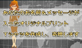 【限定5名様】あなたのお名前&メッセージが入ったオリジナルプリントTシャツを作成し、寄贈します