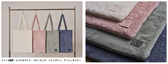 ファー素材:ヒツジホワイト、ベビーピンク、ミントグレー、アッシュネイビー