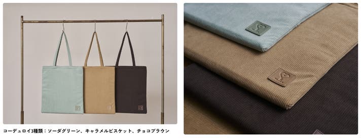 コーデュロイ3種類:ソーダグリーン、キャラメルビスケット、チョコブラウン