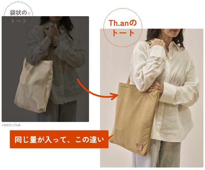 【先着割】Th.anトートコーデュロイ素材・キャラメルビスケット