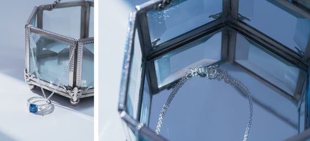 帝国よりも長い歴史を持ち、 大陸が戦乱に見舞われ王や諸侯たちが入れ替わろうとも 高くそびえ立つ山脈を背に 粛々とこの地を守り続けてきた家門 そのラチア家門の象徴である、 炎の精霊が封印されている青炎を ジュエリー専門プラットフォーム「amondz」と一緒に リングネックレス&イヤリングセットで表現しました。
