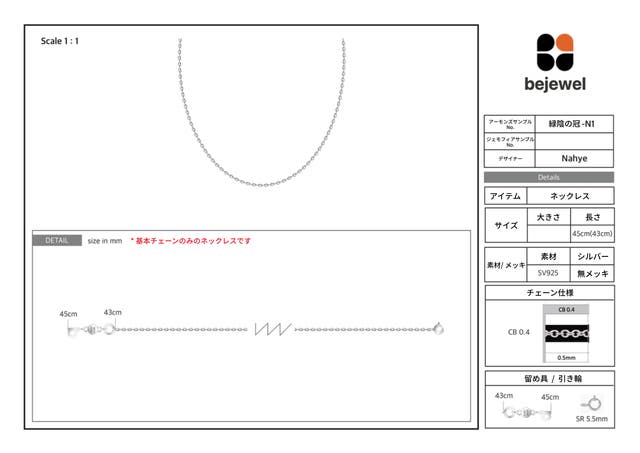 ⁑ネックレスチェーン:45x13号⁑素材:SV925⁑カラー:ナチュラルホワイト⁑