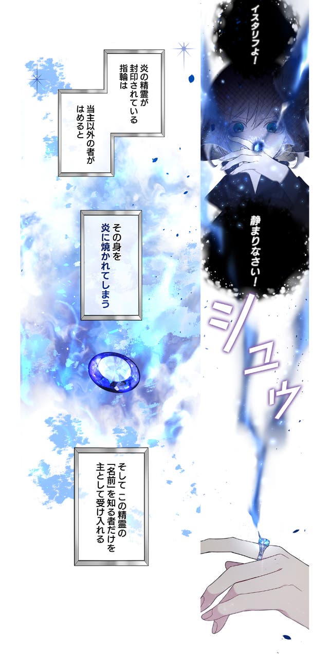 炎の精霊が封印されている青炎のリング ラチアの当主でない者がはめると、その者はそのまま燃やされてしまう。 そしてその精霊の名を知る者だけが、まさに主人として受け入れられるのです。