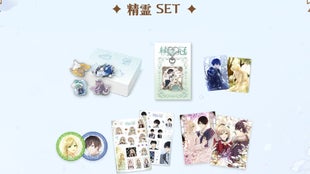 精霊ピンバッジ4種セット+アクリルキーホルダーシール2種+描き下ろしイラストはがき2種