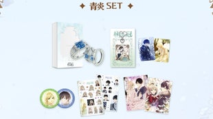 「青炎指輪」ネックレス&ピアスセット+アクリルキーホルダーシール2種+描き下ろしイラストはがき2種 缶バッジ2種+トレーディングカード2種+料込み