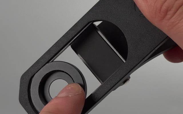 ②丸いマウント部分はカメラレンズの位置に合わせて調節できるので、使用するカメラレンズに位置を合わせます。