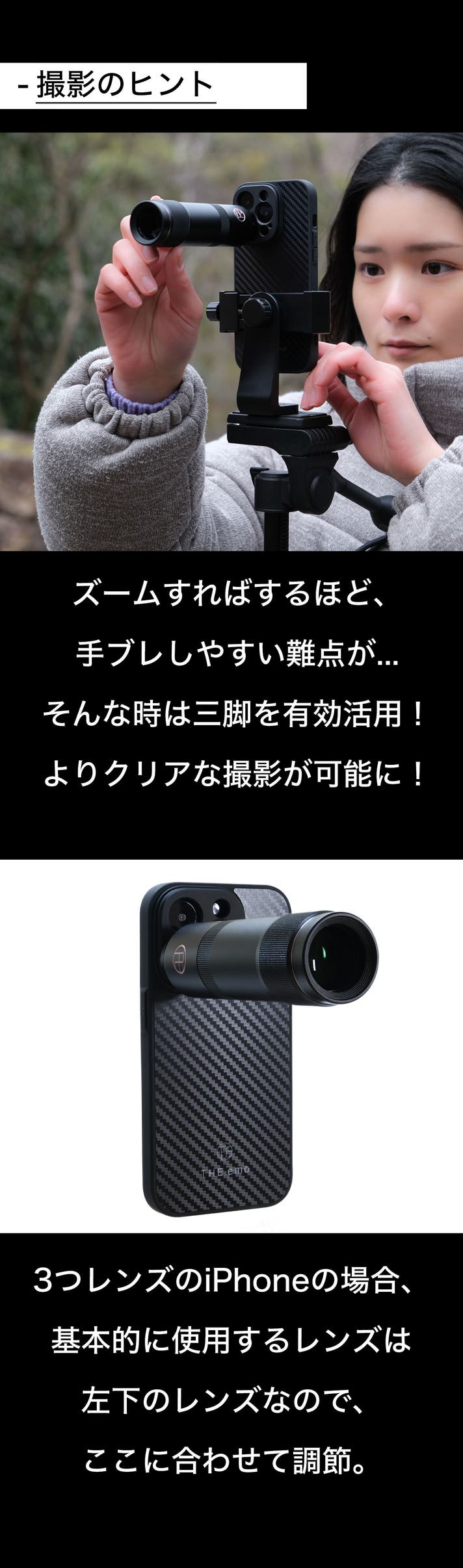 世界中でたくさんの人が使っているカメラ=スマホカメラ。そんなスマホカメラ用のフィルターを企画・開発して、スマホ写真・スマホ動画の可能性を広げたい。そんな想いで「THE emo」は始まり、今回が第7弾のプロジェクトとなります。