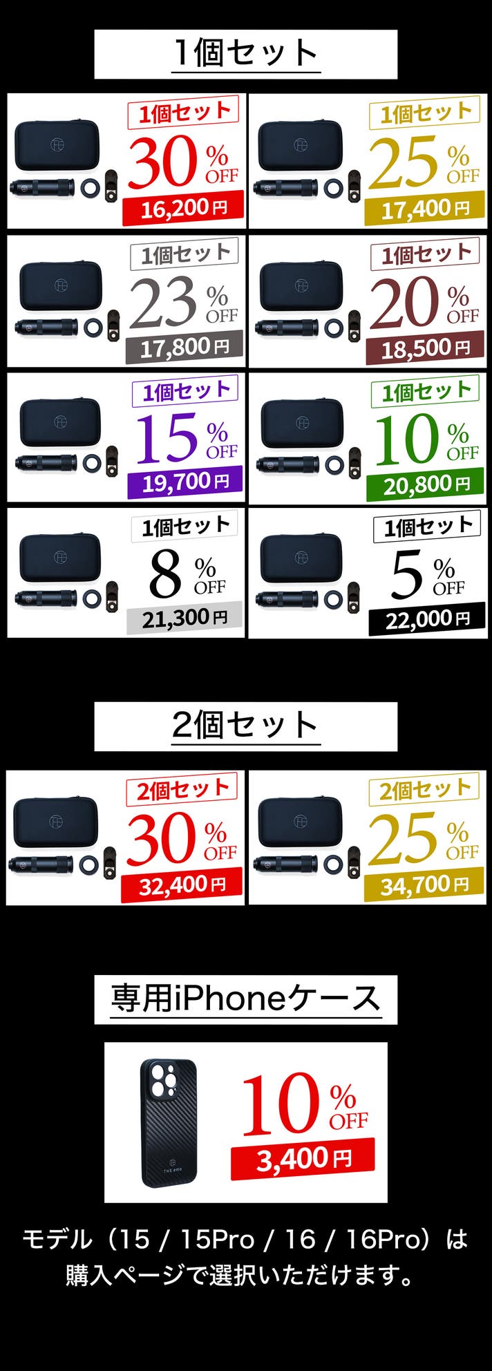 iPhone15, 15Pro, 16, 16Proは、レンズを直接装着できる専用スマホケースをご用意したので、追加で応援購入をお願いします(別売)。