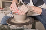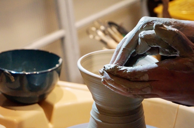電動ロクロを使って「土」を感じながらうつわ作りを楽しめる陶芸体験工房です。