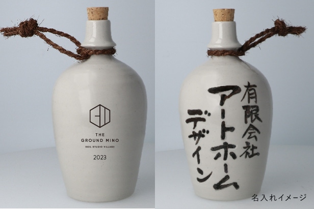 THE GROUND MINO のロゴと応援者様のお名前を手描きで絵付けしたオープン記念Makuake限定「高田徳利」をご用意いたします。
