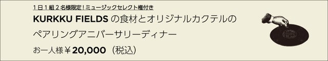 KURKKUFIELDSの食材とオリジナルカクテルのペアリングディナー4名席確約