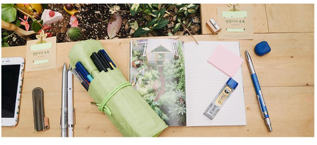 ポケットペンケースの欠点は、筆記具が一緒に収納されてしまい傷付きやすいしやすいということです。しかし、『ロールペンケース』には、3つのパートに分類されたポケットがあります。大切な筆記具を区別して保管でき、一目で見つけることができます。