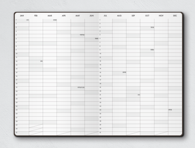 手帳は、360度まで曲がる硬い耐久性を持った洋装製本です。