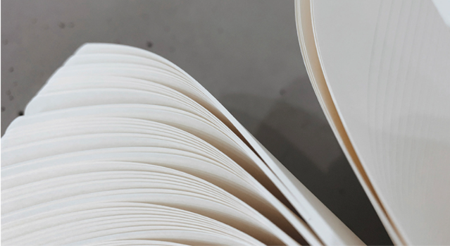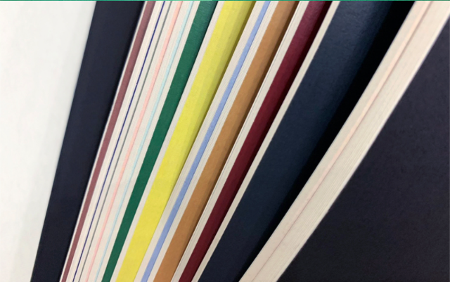 手帳の用紙は環境に配慮し再生紙を使用し、筆記感を高めながらも快適な読みやすさを維持するためにオフホワイト模造紙で製作しました。