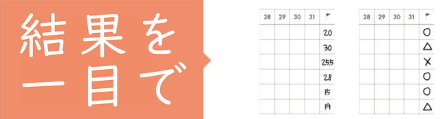 達成度合いは習慣によって表記を変えてもいいかもしれません。〇や△や×、塗り、スコア表記することができます。