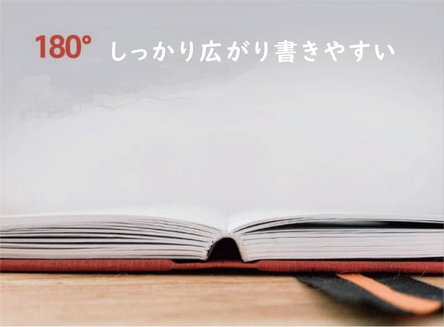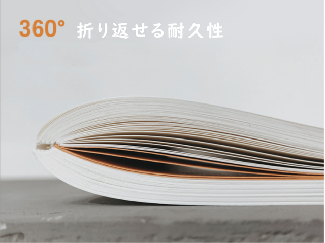 360度曲げても破れない耐久性があり、180度完全に広げられるので、中央部が膨らんで書きにくくなるのを防いでくれます。