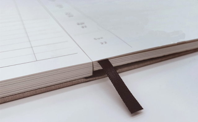 栞が付いているので、毎日記入するページを探すことなく開くことができます。