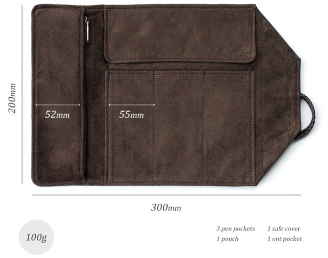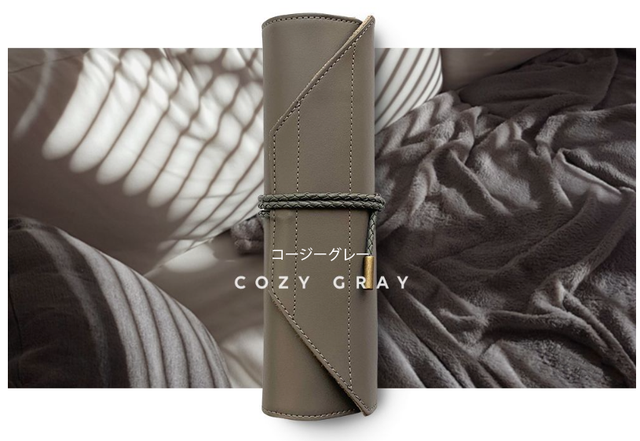 ロールペンケースのために、国内および海外の様々なパターンのレザーを検討し、清潔で洗練されたコントロールのデザインの方向に沿ってシンプルなパターンで決定しました。