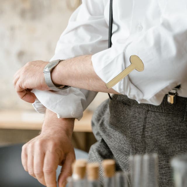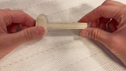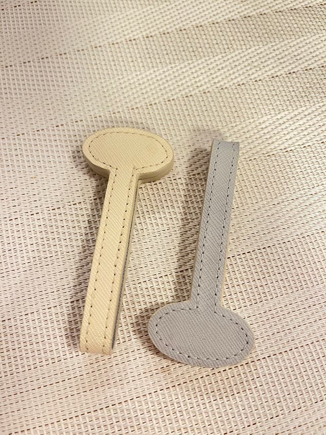 袖クリップの開発にあたり、色にはとても悩みました。男女問わず、そして年齢に関係なくオシャレに使っていただきたいと思い、メーカー様と繰り返し色や生地感の相談をさせていただいた結果、バタークリームとパールグレーという2色を採用し、両面仕様のリバーシブルカラーに決めました。