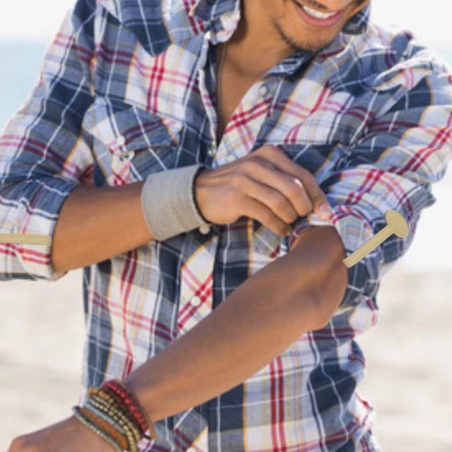 袖まくりした部分を片手で簡単に固定できる、マグネット式袖クリップです。