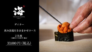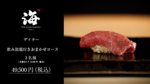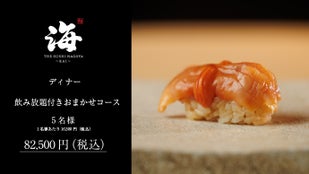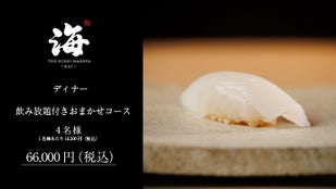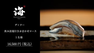 高級寿司を初めてご利用のお客様もお楽しみいただけるよう、飲み放題をお付けした特別プラン、『飲み放題付き、おまかせコース16,500円(税込)』をご用意いたしました。