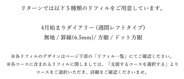 ■お好みのノートリフィルの種類は下記から1種類、選べます。