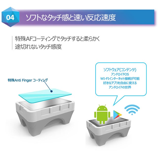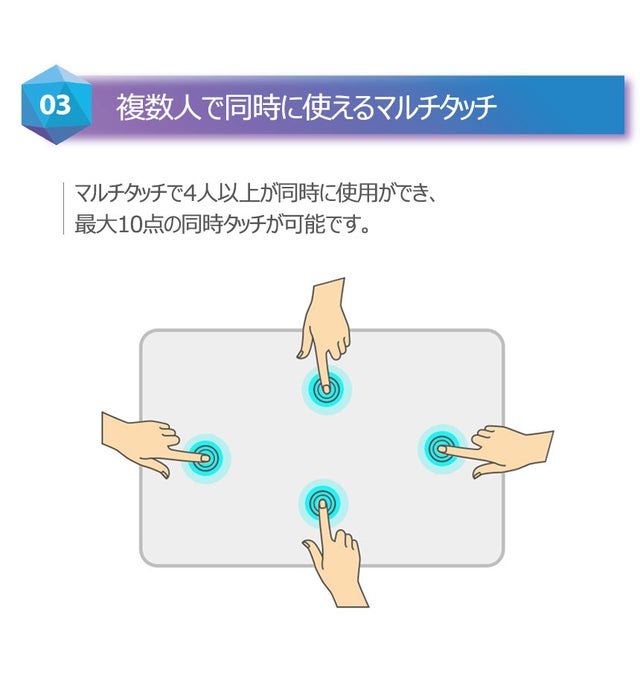 - 同時に4人以上でも使える10点マルチタッチ検知の32インチ大型液晶画面