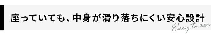深い方で約30cm、浅い方でも約27cmという長さがあり、座っても中身が飛び出しにくい形状になっています。