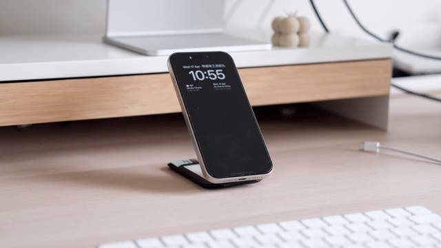 MagSafe互換なので、縦置きと横置きに磁力でカンタンにモードを切り替えられます。iPhoneをスタンバイモード(横置き)へ設置すれば、充電しながら時計とカレンダーが表示される機能*が使えます。*iOS 17対応機種で利用可。