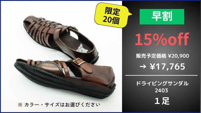 【マクアケ割】完成したドライビングサンダル 2403番1足(10%OFF)