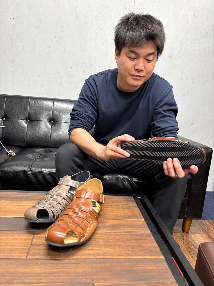 先日、ご来社いただいた際に、今回のサンダルサンプルをご試着され、ドライビング機能・デザインともにご支持いただきました!