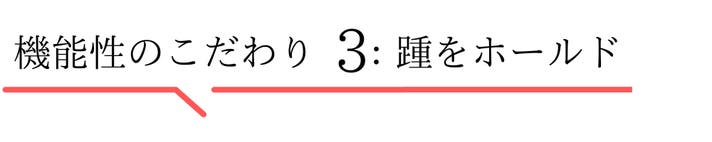 ・ベルト裏には隠しゴムによる、「脱ぎ履きのしやすさ」「足の動きに合わせた伸縮性」もポイント