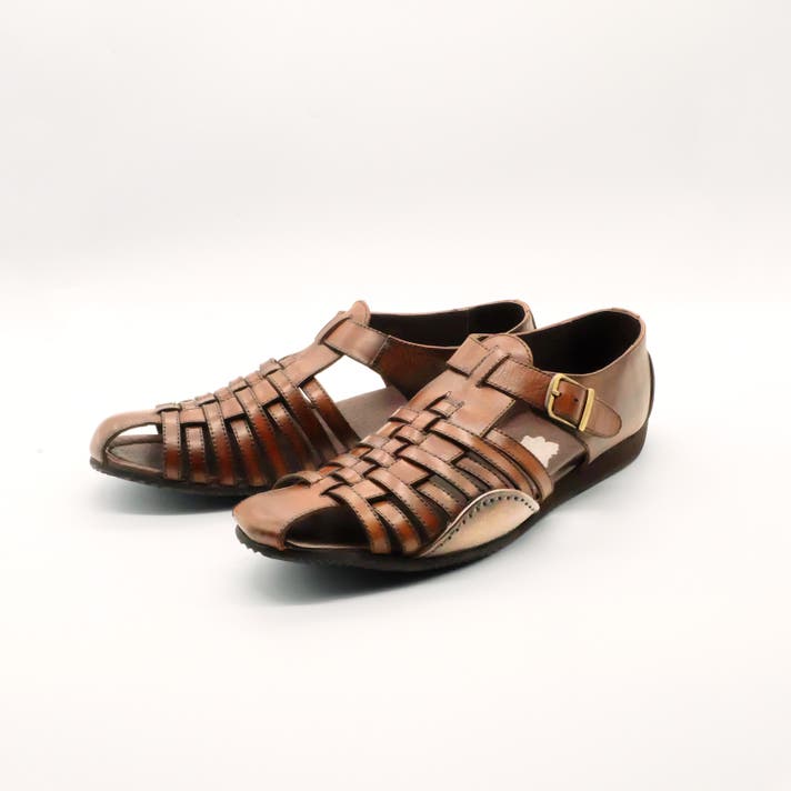 グルカサンダルは、フルレザー構造による上質感、編み込みデザインによる通気性、踵を覆う安定した設計、欧米では夏のビジネスカジュアルにも使われる、大人の定番デザインです。