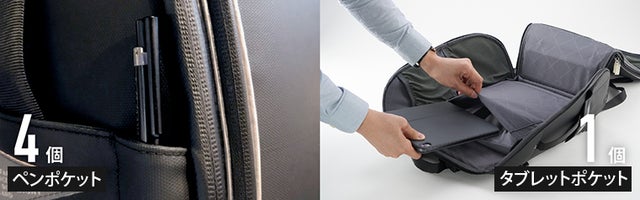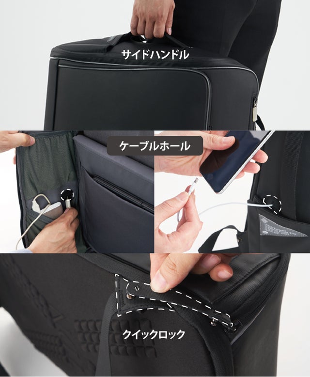 バッグ内の物を出し入れしやすいデザインにこだわりました。サイドポケットやトップポケットを開けて必要に応じて楽に出し入れできます。どんな状況や場面、動きでも出し入れしやすく設計されています。