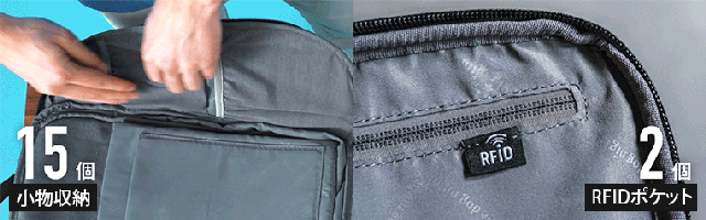 クレジットカード、パスポート、運転免許証などに記録されている個人情報は常に保護する必要があります。本製品にデザインされた2個のRFIDセーフポケットは電子スリからあなたの大切な個人情報を守ってくれます。