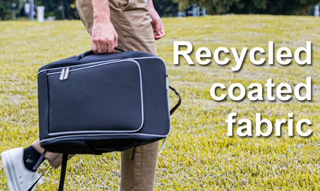 Recycled coated fabricはヨーロッパや日本の高価なブランドに使われている素材です。日光や長期間の使用にも変色や変形しにくく耐久性に優れています。さらに基本的な生活防水機能を備えています。