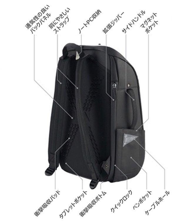 - 旅行や出張中に様々なアイテムを収納できる収納スペースを完備したTDNビジネスバックパック。