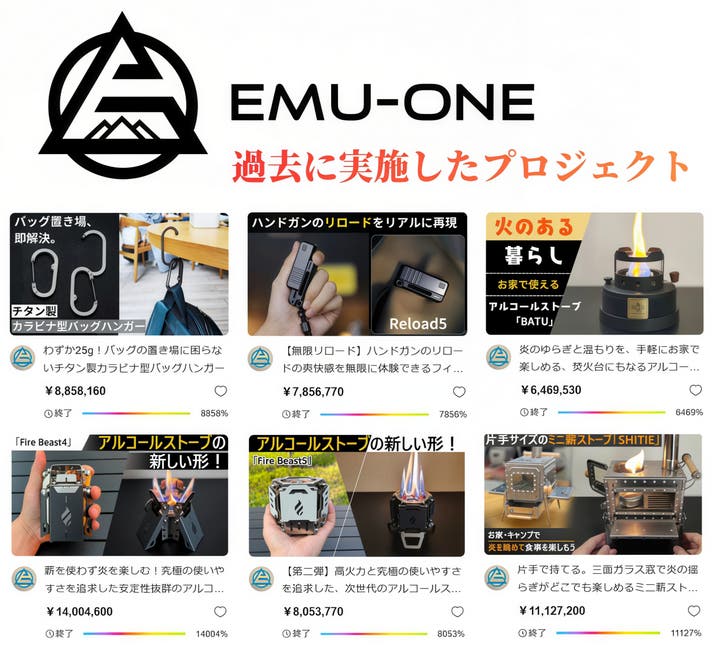 株式会社Emu-Oneは次世代のストーブや焚き火台、アウトドア用品の開発や販売を担う会社です。
