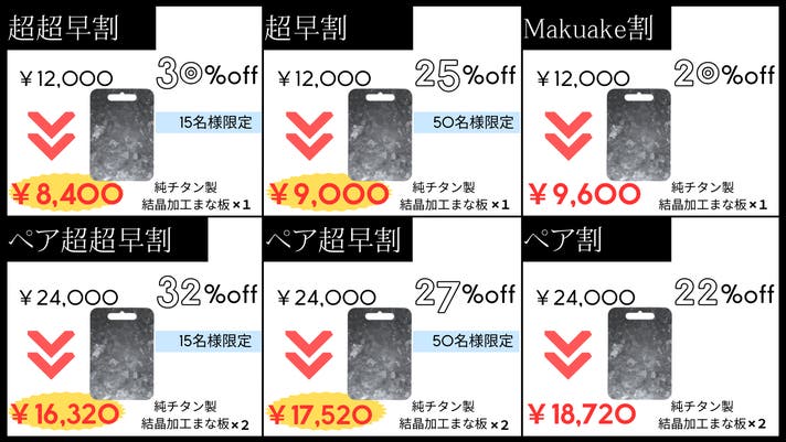 結晶チタンまな板【ペア超超早割】32%off【7680円off】