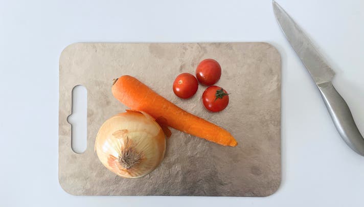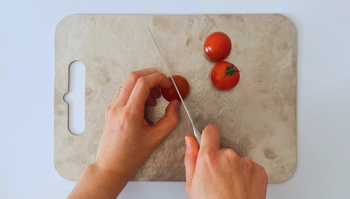 置いた瞬間に「ピタッ」と安定し、片手で押さえなくても、安心して包丁を入れられる重さ。