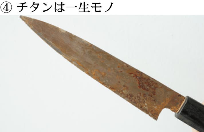 そのため表面が守られ、内部のチタン本体は、かえって錆びにくくなります。