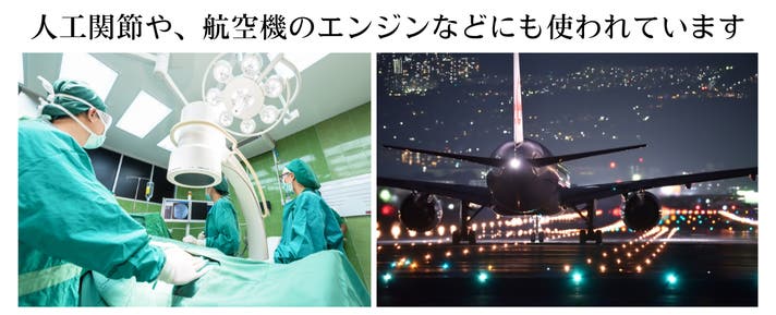 強度は温度の低下に伴って向上し、熱伝導率が小さいことから、低温環境下でも金属のような冷たさを感じません。(密度4.5g/cm3・融点1660 ℃±10℃・沸点3287 ℃)