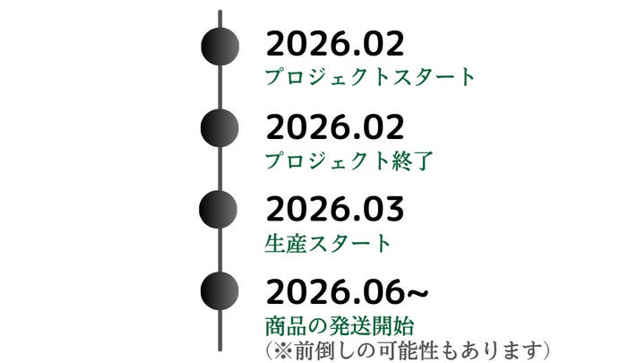 このプロジェクトはAll in型です。目標金額の達成に関わらず、プロジェクト終了日の2026年02月27日までに支払いを完了した時点で購入が成立します。