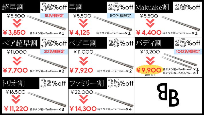 累計総額5,400万円超えの応援購入を集めた、大好評 "BTiBチタンシリーズ" プロジ