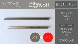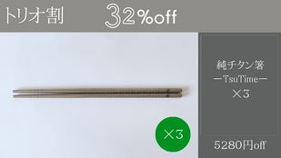 純チタン製 槌目箸【トリオ割】32%off【5280円off】