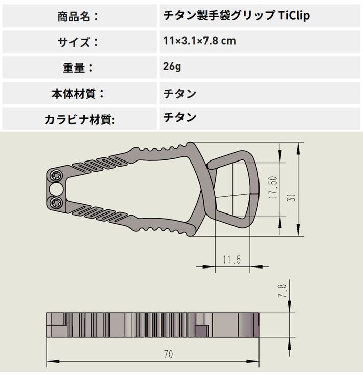 ・チタン製手袋クリップ「TiClip」 x 1