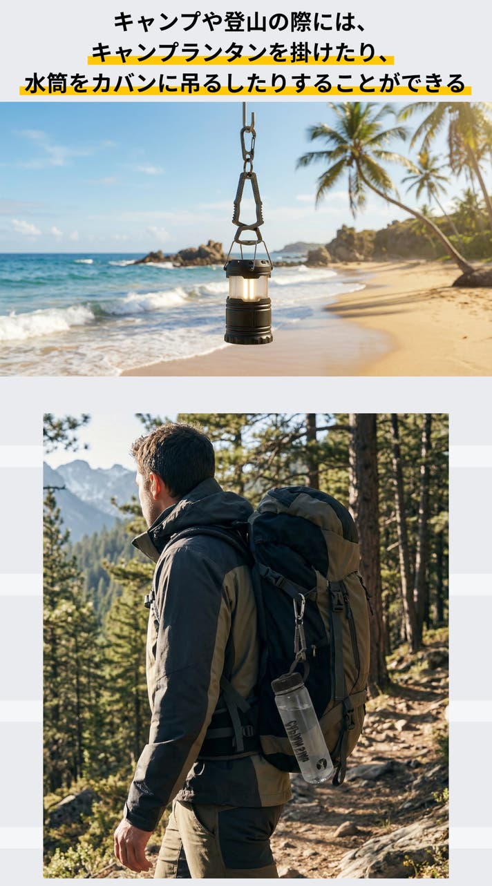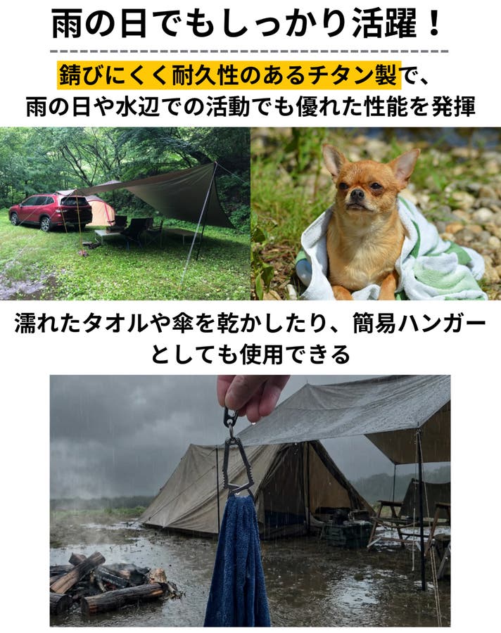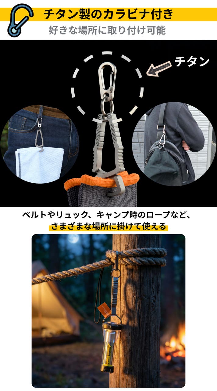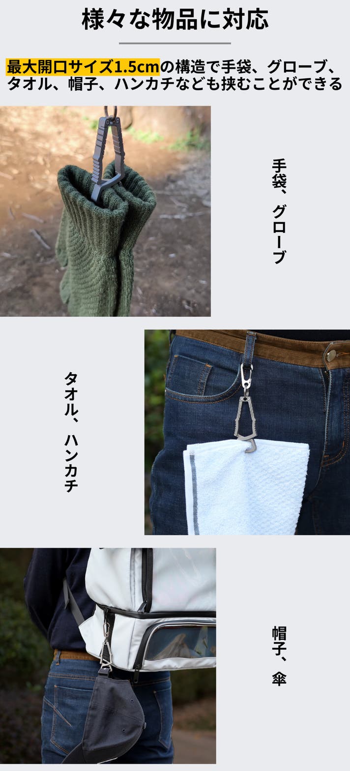 - 【シーンを選ばず使える】仕事・登山・キャンプまで、小物ハンガーとしても活躍する万能ギア。