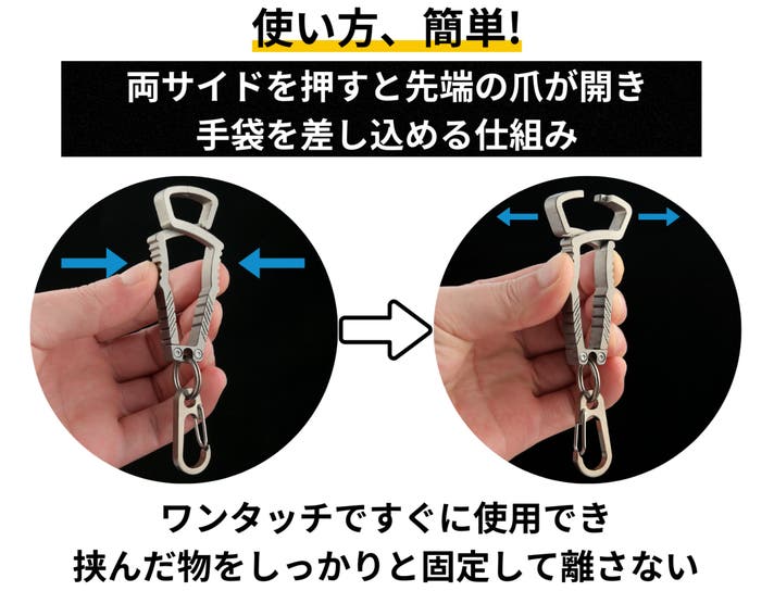 - 【操作簡単】ワンタッチだけ。手袋や厚手の作業用グローブ、タオルなどもしっかり掴んで離さない。
