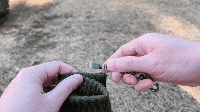アウトドアシーンでは、洗ったタオルや靴下などの洗濯物をTiClipにぶら下げて干す際にも活躍します。