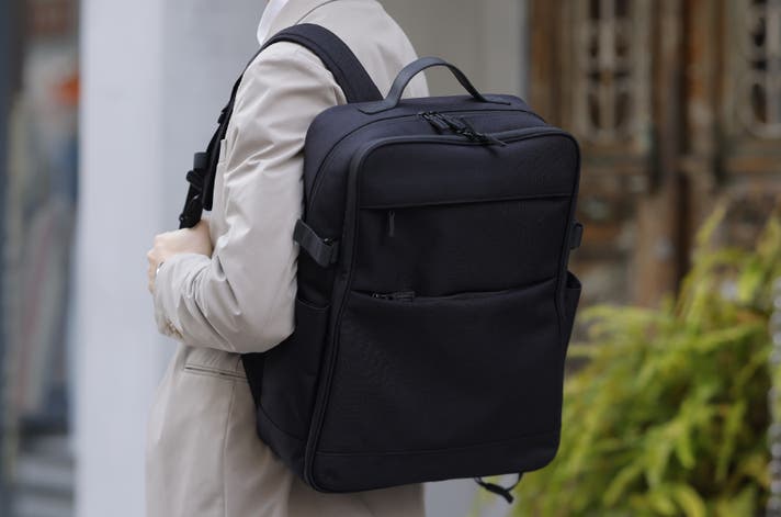 - 荷物を満載してもシルエットを堅守。物理的に厚みを分散する設計で、自立するスマートな背中を堅守。